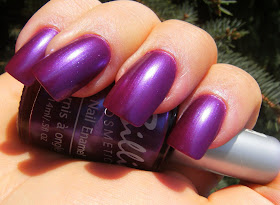 Here is one of my lovely bargain polish's... Billie 'Regal'. While I do not have hundred's and hundred's of polish's, I sometimes almost buy doubles of what I have, or colors very very close to what i gotz....... and that almost happened this week. This is a nice deep fuchsia/purple color with a pretty shimmer. It was impossible to get a good indoor picture, so outdoors only for this one.....until I got to the glitter, then it was overcast = = =frigg-diggity..... whenever I add my glitter coats the sun disappears behind the clouds!!!!!