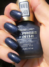 Left Land - 3 coats of Maybelline Matte Sapphire & 2 coats of Matte Maker Right Hand 1 coat of Maybelline Matte Sapphire. I like the color of just the 1st streaky coat and found it to be too dark with 3 coats of the Matte Sapphire & the matte maker..... hmmmm