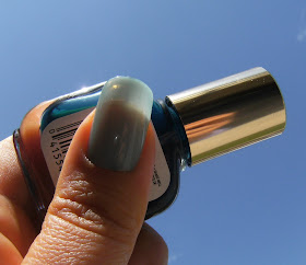 Finally, we have Ghetto-Ghetto Fabulous. I have this 'Viva' brand polish in black as well, and I am certain that this is Auto body paint just in a tiny bottle. Sometimes it gives off the aroma of standing water in a creek or bog, but mostly I can detect the scent of an Auto body paint booth. Of some photos I have seen , this sorta looks like Misa Ghetto Fabulous, though I have never seen that polish first hand. These photos of Ghetto-Ghetto Fabulous were taken during an overcast day. Definitely a polish that should be used out side. I think it's a pretty color and plan on a full Mani soon with some Sunshine Pic's .
