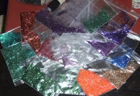 Here is some small amounts of glitter that I took form my moms huuuuuge glitter stash - she gotz glittah! I am slowly weeding out my craft stash and am trying to only purchase and or acquire what I really, really need. I will be making a donation to her soon of the glitter that I have hanging around here......