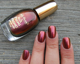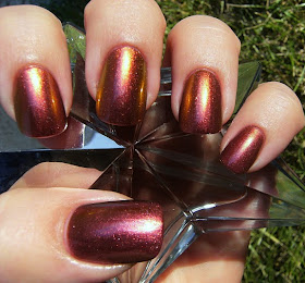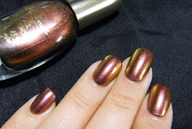 No-one can possibly be sick of nail prisms yet...... Here is the lovely Nail Prisms in 'Bronze Pink' - 2 coats over a pinky-beige base color, and 2 coats of Nailene Acrylic Strong Top Coat. ( I always layer prisms and other duo-chromes ). This polish flashes a rich ruby, a bronze metallic, and a lovely sharp gold. Very Pretty! As all duo-chromes polish's I find that these look their best in the worst lighting conditions..... Hmmmmm. Flash photos did capture the duo-chrome like usual...