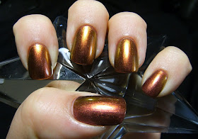 No-one can possibly be sick of nail prisms yet...... Here is the lovely Nail Prisms in 'Bronze Pink' - 2 coats over a pinky-beige base color, and 2 coats of Nailene Acrylic Strong Top Coat. ( I always layer prisms and other duo-chromes ). This polish flashes a rich ruby, a bronze metallic, and a lovely sharp gold. Very Pretty! As all duo-chromes polish's I find that these look their best in the worst lighting conditions..... Hmmmmm. Flash photos did capture the duo-chrome like usual...