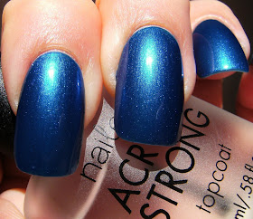 Here is 2 coats of Icing '?' with a coat of Nailene Acrylic Strong Top Coat. The formula on this was fabulous, and I was happy I only needed 2 coats. I love this color and have done comparison with China Glaze 'Shower Together'. I don't have alot of these dusty dark teals but they are definitely a unique, notice me color.