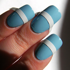 I usually would apply a final coat of Top Coat to this type of mani, I had hoped to get picks outside but that never happened, hence the sorta bumpy-ness of my blue base color.