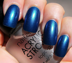 This blue is from the 'Desert Diva' trio that I found recently. The formula on this one was awesome! I could have gotten away with 2 coats, but was a bit sloppy in my initial application and needed 3. I have been really fortunate with all the shimmery rich blue polish's I have come across recently - but NYC Skin Tight Denim is still my fave!