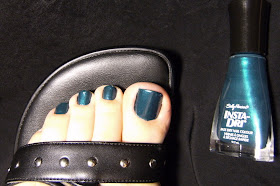 So - It's been a pretty boring few months for toes here at Deez Nailz...... I have worn Sally Hansen 'Teal Take-Off' like 4 different times, and China Glaze 'Shower Together' a few times as well. These photos are from the second time I tried 'Teal Take-off' wow - what a horrible paint job - the polish was drying toooooo fast , and I could not get a nice even application.
