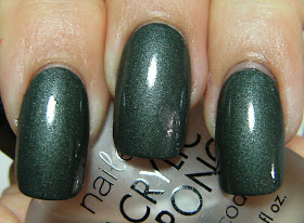 Dang - as soon as I applied T.C. to the last nail, I banged my middle finger into my desk top - nothing some glitter or nail art cant fix. I made this franken with a base of Nat Robbin's 'Greed' and some white body shimmer and a few drops of a black glossy polish. It turned out awesome and exactly the shade of green I hoped for.