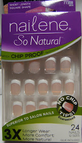 I received this sample of Nailene nails along with a newer-to-me glue.The pink-tinted brush on glue was a little thinner then I am used to and dried super-duper fast. A little too fast for me, and I think it will take alot of practice to get used to it. I do love my regular glue and have no plans to change anytime soon, but I know this brush on glue will come in handy for when my false nails begin to 'lift' from my natural nails. The brush is on the stiff side and will easily wedge between the false nail & my natural nails.