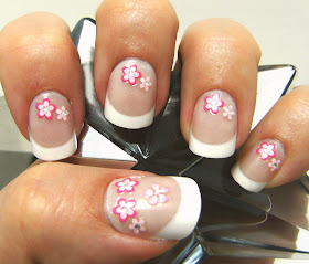 I think the white flowers will be pretty to dress up a basic french manicure. I like how it has a bit of a curve to it.
