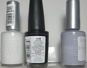 Here is a lovely light purple creme I made using N.Y.C. 'China Town' a dark, almost black shimmery purple and a stark white creme polish - 'Billie French White'. With 3/4 of the Billie white in the bottle, I added approximately 15 drops of the N.Y.C. 'China Town' and this is how it turned out. While I haven't really been into the light -almost white- pastel shades of spring, doing a test drive of this franken made me appreciate them a little more.