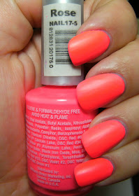 I started with 2 coats of Billie French White, then a coat of Nailene Acrylic Strong Top Coat and made sure it was dry. I then applied 3 thin coats of Billie Rose, which thankfully dried extremely fast. I kinda like the weird finish these Billie fluorescent polish's have when they dry; but this wont last long, hence the no top coat, I had some things to paint and fix-up so I just enjoyed this burst of colour for the afternoon only!