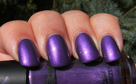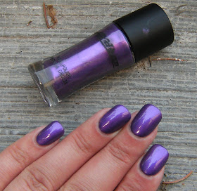 This polish from Ardene needed 4 coats, it dried fast and it dried shiny! This is 4 coats with 1 coat of Nailene Acrylic Strong Top Coat. I was hoping that there would be some hidden micro shimmer in this polish but it is just a plain medium purple shimmer. I love this shade and I love the shimmer.