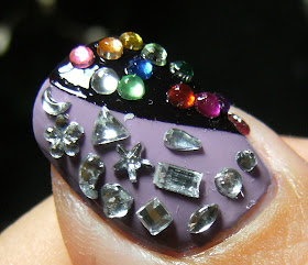 These things actually stuck on perfectly just the clear nail polish anchoring them to my nail, but if I do a look soon with rhinestones I will be putting Top Coat over it, to make sure I don't loose any.
