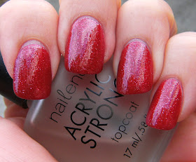 E.L.F. Cranberry, 3 coats with 1 coat of Nailene TC.