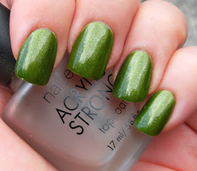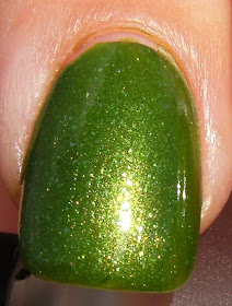 I know I said I would be layering NYC Love Letters over a green polish for my next post, but I think that this is very nice on it's own and I just couldn't top it with anything. Sinful Colors See You Soon is a lovely grass green with golden yellow-ish shimmer and sparse glass flecks. Here is a much better description of this shade.