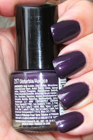 This polish needs good lighting to really show off the beautiful purple color and subtle shimmer. In the shade and in dim lighting it is very, very dark. I loved the formula on this one and love this shade of purple. I found the brush handle to be a little too thick and small and so I accidentally dropped it - Dang!