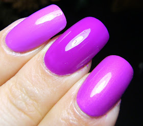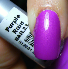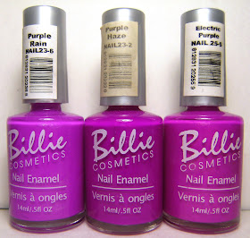 My middle nail, Billie Purple haze is a straight up florescent purple, while Purple Rain, and Electric Purple have slight shimmer to them and are much more opaque.