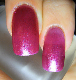 This Billie polish is super- duper, ridiculously metallic... it looks like tiny pieces of metal. This bottle has contaminated 2 perfectly good bottles of TC, before I figured out why my TC had little bits of silver in them.....