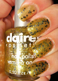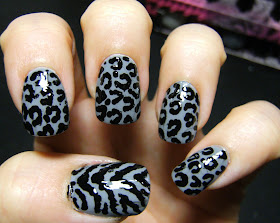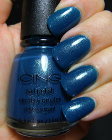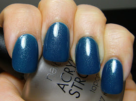 This is 1 coat of NYC Skin Tight Denim, followed by Billie Silver sponged on the diagonal with 1 coat of TC. The sponge technique is a great way to add alot of flair to a mani VERY easily. I just dot nail polish onto a small piece of aluminum foil, dip the sponge in the polish and gently and dab it on my nails.... gradually fading it from the tips or towards the tips of my nails. I just used an ordinary kitchen sponge for this one, but using a foam craft brush works great, too.