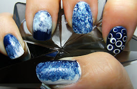 Below is some more drag marbling. The full post for below is HERE - I love my ring nail and pinky nail......this is the 'day to night' look that I copied form MayParis's you tube. My middle nail is a full on drag marble. Its neat; but I would rather sponge on a mix of polish for effect then wrestle with swirling polish that is rapidly drying.