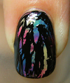 The last few multi polish nail looks I have done, have names that somehow..... go together? Like the combination of words are silly and funny to me. Anyhoo - this is a neat look for crackle polish. I have seen this on several blogs and it my favorite crackle 'look'. I sponged on Sinful Colors Cream Pink, Unicorn and Fly Away. I applied a thin coat of clear polish then quickly applied the Ardene Crackle polish then I added another coat of clear. No TC in these photos.
