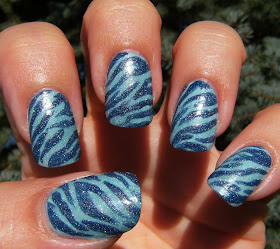 I made the franken I used for the zebra stripes with a pretty light blue shade of stripe polish =I poured out half then added Claire's Matte Cobalt.
