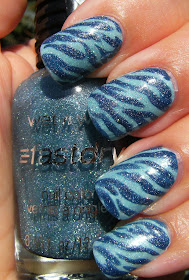 I started with a base of a franken I made ' Is This Love ', then made the zebra stripes with with another franken I recently made using stripe polish from The Bragain Shop! and Claire's Matte Cobalt. I ended up with two of the same light blue colour so I figured I should franken it.