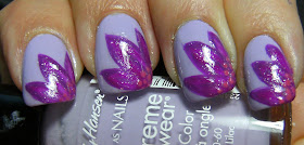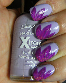 stuff I used; Sally Hansen Xtreme Wear Lacey Lilac, pink & purple stripe polishes and SH Pina Colada Pop