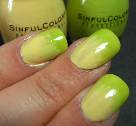 above and below, I brushed on, then sponged Sinful Colors Unicorn, and Sinful Colors Innocent