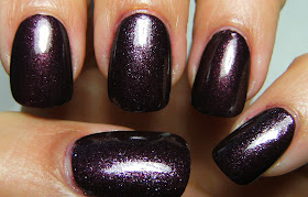 here is a photo of Sally Hansen Crystal Grape on its own from a previous mani, It is very sheer but looks great layered over a similar coloured polish.