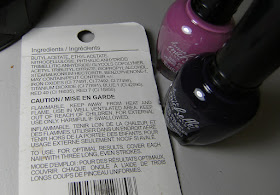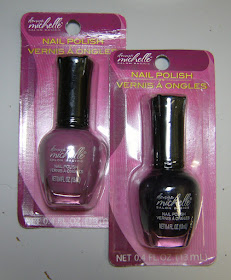 This Mani was 3 coats of a no name Donna Michelle nail polish that I found at The Dollar Tree in Canada. I googled the name of this polish = but they don't have real names! So I am calling this Pink while the other polish shown below will be Dark Purple..... I thought for sure they would be one of those ultra stinky polishes from overseas but it wasn't that bad.