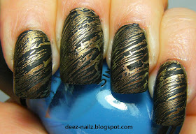 ........not bad for my first try, a couple of things I will do different is make sure I don't cut the sheet too small, like on my thumb nail, and sit still, I banged my nails up trying to do the nails my other hand. I have no idea where or what those dark marks on my middle nail are. I think this is a neat look and I will be trying it again but with a different colour scheme.