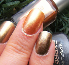 Blogger is being extra speedy at the moment so I am gonna add another post for today ( may not be my last ) Here is 2 coats of Indulge Beauty 'Gold' over Maybelline 'City Slick'. With the exception of my INDEX finger, which is just 2 coats of Indulge Beauty 'Gold'.... NO top coat. There is so many dings and boo-boo's on this Mani I am a little embarrassed to show it. But I really want to add this to my blog.......