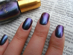 ReplyDeleteThat's so funny. I ordered that polish two weeks ago on ebay (can't get any SH in France, sadly) and swatched it for a notd to be published in two days. However your pics are much better that mine. I just couldn't figure how to take a decent shot of the duochrome effect!