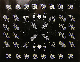 I started with 2 coats of one of my latest frankens 'Teal #003' a very vibrant color that dries to a satin finish. When it was dry I applied the Nailene French Tip guides up-side-down the the corner of my nail, and used the Black french tip pen to color this area in.. This dried super duper fast because it is a water based nail color (and must have a top coat over it). I then added these cute little roses from the bedazzle # 71042 to the black tip area, and disguised the line where the polish meets up Nailene French Tip Pen with a line of a beautiful glitter; Sally Hansen 'Secrets'. I then covered the 'decorated' area with 2 coats of my cheap Billie Top Coat and let everything dry.