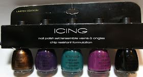 I was hoping to find someone else who came up with names for these 5 pretty polish's from the Icing LE 5 pack..... I have already modeled the beautiful coppery brown color HERE. and hope to model the pretty purple and magenta shades soon. So if anyone out there has 'real' names for these please let me know! I'm all tapped out for naming polish's♥