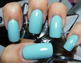 I mixed this with a pure white polish and got this beautiful light, bright robin's egg blue.