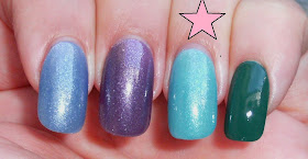 My problem was that i was adding creme finish polish's to the franken mix, when I should have been adding DROPS of sharp, richly pigmented colours to tint the base of this polish which would allow the mica to show through ( nothing that would have white in it ). And so I have created 3 pretty polish's that look great layered or can hold their own with 3 to 5 thin coats.