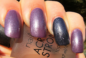 On my ring finger is Claire's Matte Cobalt - an awesome matte dark blue polish that is very, very pigmented . I have layered 1 coat of my franken 'Candied Radish' over it - but removed it shortly to do a comparison with China Glaze Grape Juice.