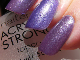 Here is a franken I made with an old skool S.H. New Length's - 'Candy Lace' and S.H. Hard as Nails 'Radish'. This ended up being a very pretty red based purple with irregular flecks. The ending numbers of both of these polish's is 04, what a neat coincidence! I'm very pleased with this one and did not mind painting on 4 to 5 thin coats as they each dried really fast.
