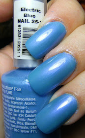 Electric Blue is another sheer but lovely blue shade from this brand. It has a subtle pinkish flash, and has been great for layering. I wish it was a tad more opaque. This dried fast so I can't complain.