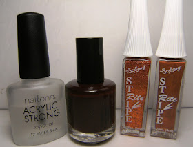 stuff I used; Nailene TC Old Skool Sinful Colors Maghony & 2 unnamed stripe easy striping polish's