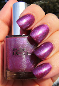 ... whoops! This was a photo before I added Pure Ice Rio so 1 coat of Maybelline Express Finish Violet Aluminum, and 2 thin coats of Sally Hansen Grape Pop. SH Grape Pop is a sparkly grape colored jelly polish.