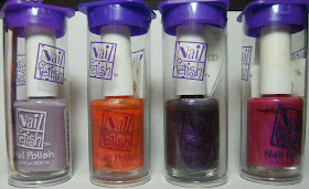 I have already swatched the pretty purple on the right, These Nail Fetish polish's came with nail stickers or a nail file. I left behind quite a few shades, a gold, shimmery black and a darker vampy purple.