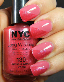 stuff I used; NYC Classic Coral Creme, Sweet Serenity no name mini from DollarRama Canada