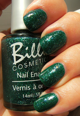 This mani is 3 thin coats of Billie Cosmetics Anxiety that I found at The Dollar Tree Canada, layered over 1 thick coat of Sally Hansen Insta Dri Mint Sprint. Billie Cosmetics Anxiety (lol) is a lovely teal jelly with irridescent glitter. I have a love/hate relationship with Sally Hansen Insta Dri polish.