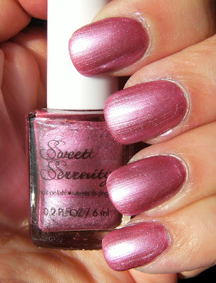 When I first started buying these Sweet Serenity polishes from the Dollar Rama - they had the consistency of lumpy Elmer's school glue, never dried and had a weird smell. however I have since purchased 4 new sets and am very happy with the quality. This is a lovely metallic pink that was good in 3 coats, application and dry time were fine. these come ion sets of 3 for $1.25 CAD and Dollar Rama has new shades every so often.