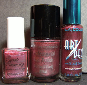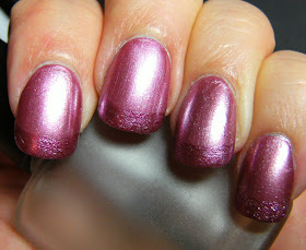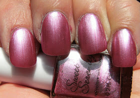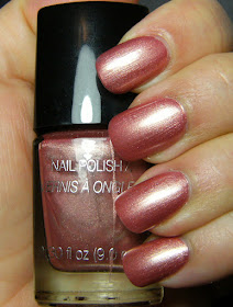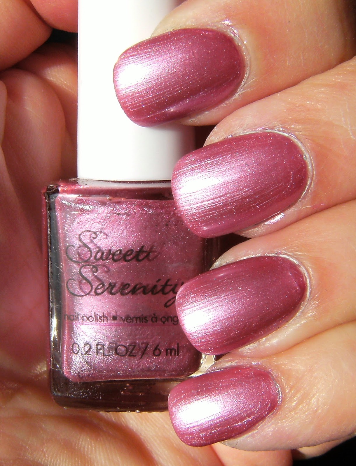 When I first started buying these Sweet Serenity polishes from the Dollar Rama - they had the consistency of lumpy Elmer's school glue, never dried and had a weird smell. however I have since purchased 4 new sets and am very happy with the quality. This is a lovely metallic pink that was good in 3 coats, application and dry time were fine. these come ion sets of 3 for $1.25 CAD and Dollar Rama has new shades every so often.