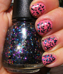 I love all sorts of glitter but this polish wasn't glittery enough for me. I recently visited an Icing Store and picked up quite a few of these Icing polishes. We used to have one in the nearest big city but they closed down, it was one of the only reasons I even went to the mall in that town. Anyways, this is a blue/gold/magenta/black glitter that I found too sparse for my glitter neeeds - but I love black glitter right now so I suppose I will hang onto it.