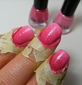 The base of this Mani is a gradient sponge of 2 pretty pink no-name nail polishes from Kozmic Colors that I found at the DollarRama. I have about 75 of these Kozmic color polish's they are found at the Dollar Tree and also at the DollarRama in Canada. They are dirt cheap and this company is cranking out new collection every 6 months, and so I try and get the whole collection at once when I see it.